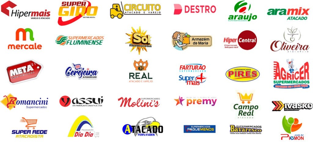 Nossa atuação inclui redes como Hipermais, Super Giro, Circuito Atacado e Varejo, Destro, Araújo, Aramix, Supermercados Fluminense entre outras marcas expressivas em suas regiões.